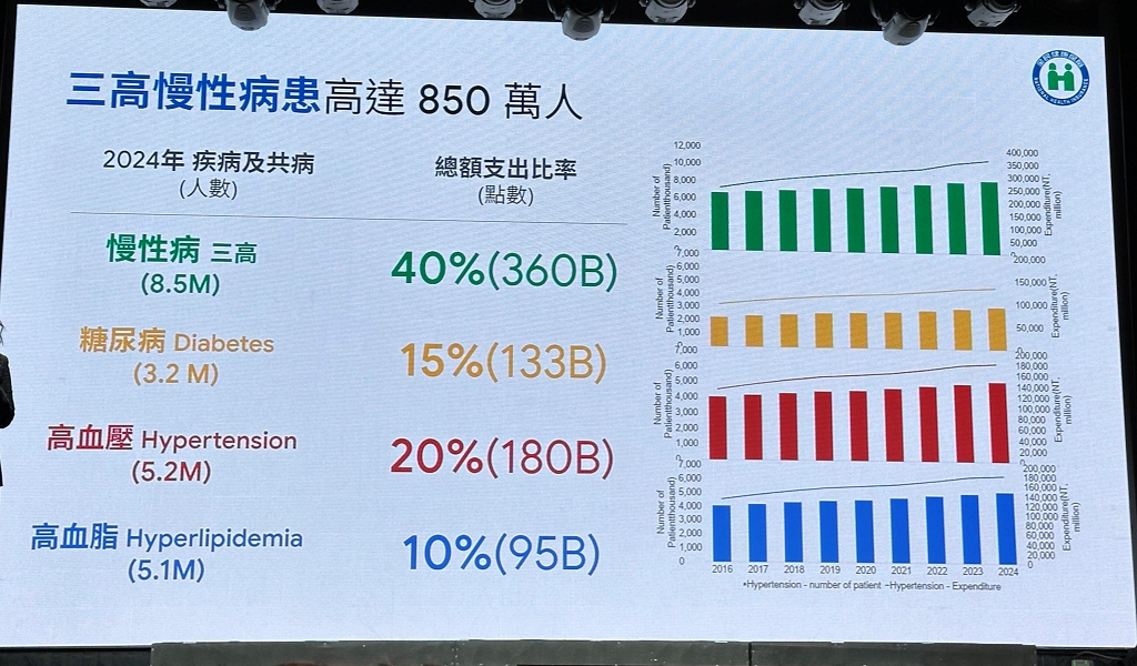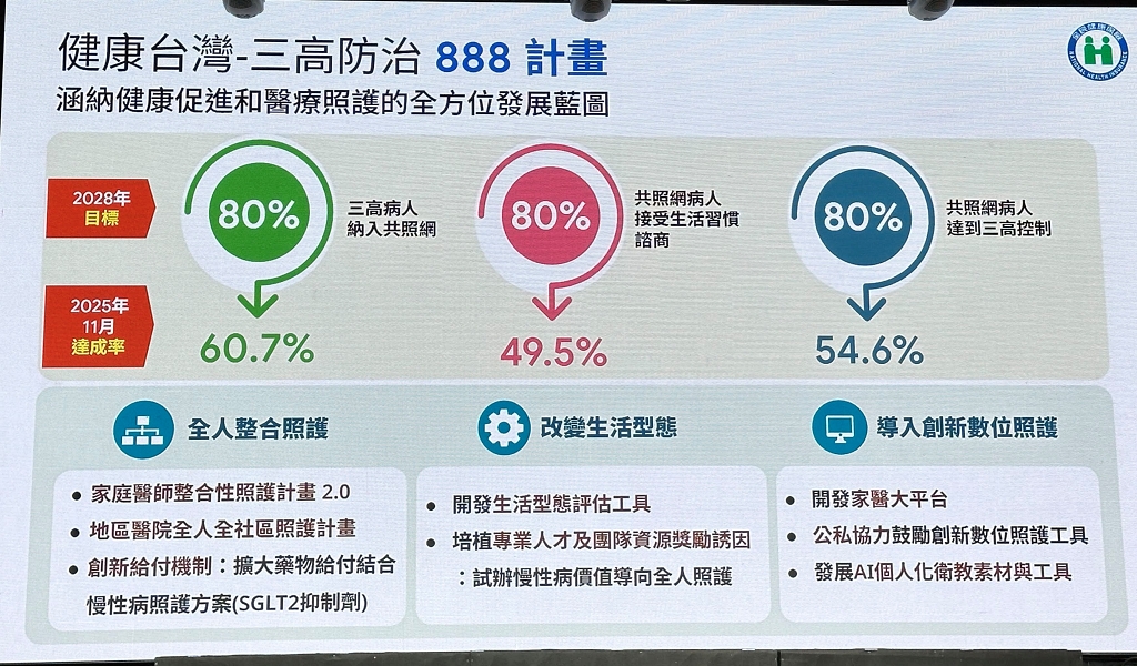 再加上,總統賴清德上任後提出健康臺灣888的三高防治計畫,目標是2030年前將80%的三高與慢性腎臟病患者納入照護網,並讓其中的80%患者接受生活形態諮詢、80%的三高與慢性腎臟病患者達到最終控制目標。