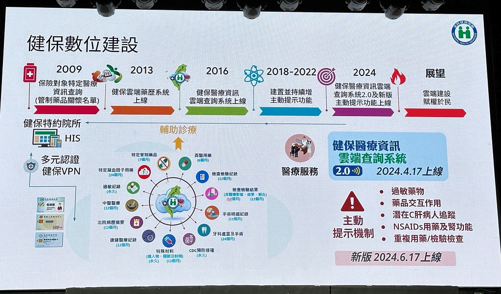 2024年,健保署更上線健保醫療資訊雲端查詢系統2.0,不只提供更好的使用者體驗(UX)介面,還新添了過敏藥物、藥品交互作用、潛在C肝病人追蹤、重複用藥或重複檢驗檢查等主動提示機制。