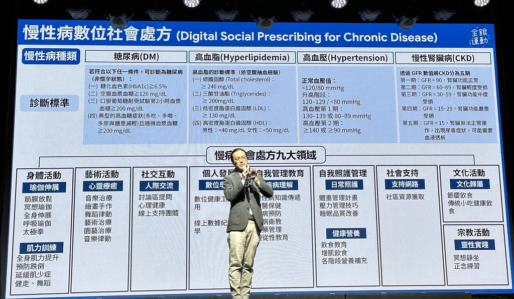 他引用調查發現,偏鄉地區普遍存在三高慢性病問題,也常常延誤就醫。於是他們參與健保署與Google的糖尿病AI預測專案,自去年12月開始推動社區數位健康促進活動,預計至2027年。