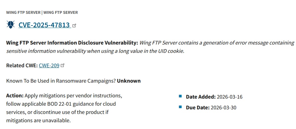 Wing FTP資訊外洩漏洞列入已知利用漏洞清單,用戶需盡速更新至7.4.4以上版本