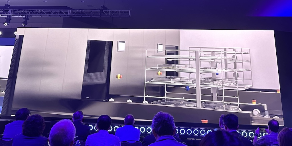 Bryan Harris還揭露一項丹麥醫療器材滅菌機構的實例,他指出,該機構原先判斷,清洗流程瓶頸是因為負責排列器械托盤的緩衝升降機(buffer lift)發生卡滯。但在導入數位分身、進行模擬分析後,團隊發現托盤並未卡住,而是該升降機本身即為中央分流節點,需負責重新分配所有器械托盤流向,因此形成排隊延遲 。