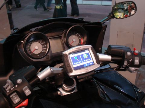 GARMIN推出的機車用GPS車機,現場同時展示用於BMW重型機車上的情形。該款GPS產品與可與騎士的手機以藍芽互通,用以接聽來電,或是利用GPS產品上觸控輸入號碼直接撥打給朋友。