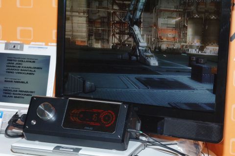 華碩此次展出的概念型外接式顯示卡XG Station,可讓使用者透過筆電上的Express card連接,就能以外接擴充的方式立即提昇筆電的繪圖效能。XG Station在操作上,設計一電源鈕作為開關使用,另外在旁邊的旋鈕上,則提供音量控制與GPU時脈調整、風扇轉速設定等功能,並且內建USB連接埠與SPDIF等音源輸出功能。華碩表示,XG Station計劃於6月在台上市,但售價未定。