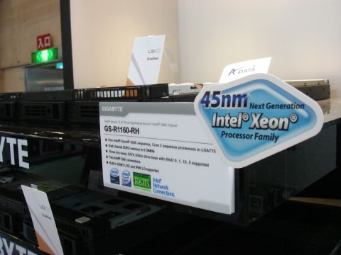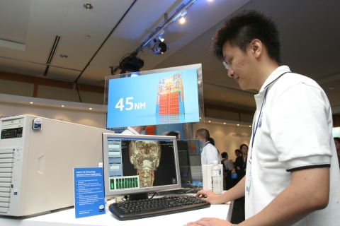 下半年才要發表的45奈米Penryn架構處理器,英特爾現場分別展示桌上型與伺服器系統。