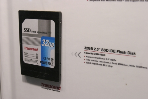 創見現場展出一系列SSD,容量最大至32GB,介面則包括IDE、PCI Express等,未來將支援SATA介面。