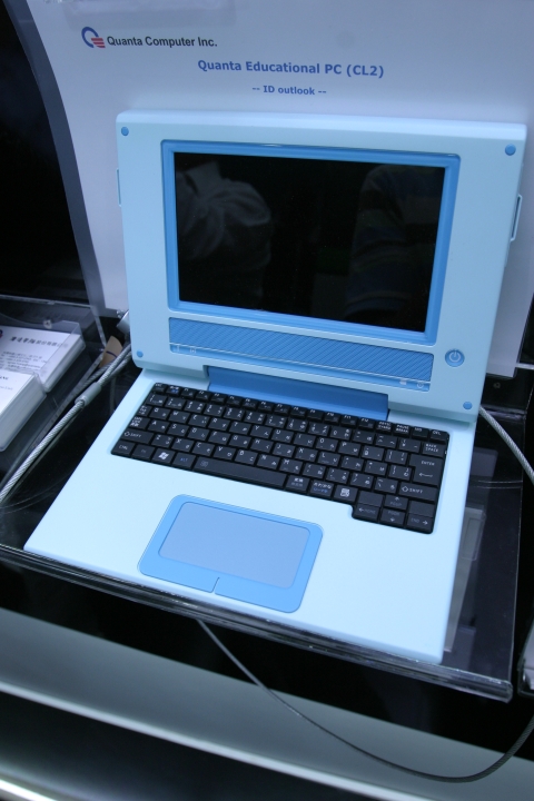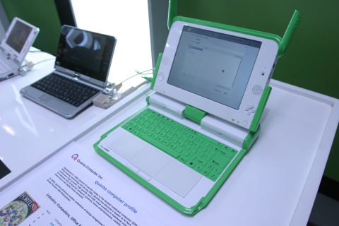 AMD會場展出廣達為OLPC設計的第二代百元筆電,使用Linux系統。