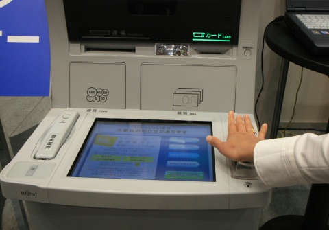 為解決提款卡遺失的問題,東京三菱銀行已在全日本700多個分行部署了整合掌靜脈辨識技術的ATM。其中掌靜脈辨識是作為與IC卡配套的認證機制,用戶的掌靜脈資訊儲存在IC卡上,用戶只要將IC卡插入ATM,再將手掌置於感測器上方就能完成認證。這套系統的優勢在於遺失IC卡並不會造成任何存款盜領風險,而且掌靜脈資訊只存放在用戶自行保管的IC卡上,銀行方面亦可迴避收集與保管用戶生物特徵涉及的法律問題,目前東京三菱銀行的用戶中已有60%啟用了掌靜脈認證機制。