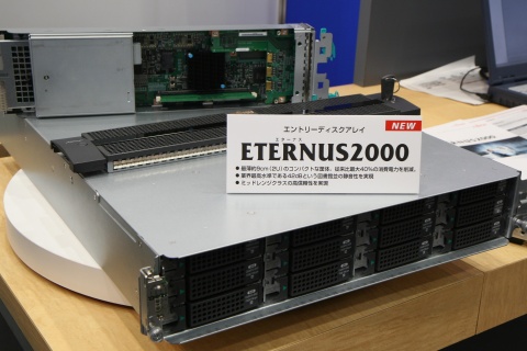 Eternus 2000是可同時支援SAS/SATA介面硬碟的光纖通道(FC)磁碟陣列,其中基本的款式為2U、12Bay的Model 100,最大容量可達7.2TB,而進階的Model 200則為21.6TB。兩種款式均採雙控制器設計,並能支援RAID 6,可容許RAID群組中同時損壞2臺硬碟。這一系列產品最大的特色是可透過SAS的向下相容性,在同一機箱中混合搭配SAS/SATA硬碟。另外Eternus 2000電力消耗比過去的2U磁碟陣列低40%,運轉噪音亦只有圖書館等級的42dB,能滿足非機房隔離的環境使用。