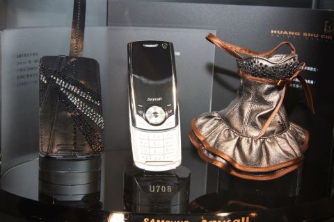 手機左右兩邊分別為由國內服裝設計師黃淑琦設計的限量1000組男女手機套。