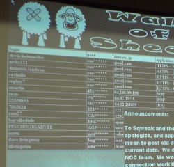 最明顯的例子就是,在DefCon現場展示的「綿羊牆(Wall of Sheep)」。數聯資安技術處經理楊伯瀚指出,綿羊牆就是在DefCon會場上,以部分馬賽克方式,將監聽到的帳號、密碼投射在這面綿羊牆上。「這也證明,無線網路的確仍有很高的風險性,」楊伯瀚說。