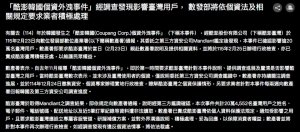 酷澎韓國資料外洩事故最新調查結果出爐,臺灣逾20萬用戶受影響
