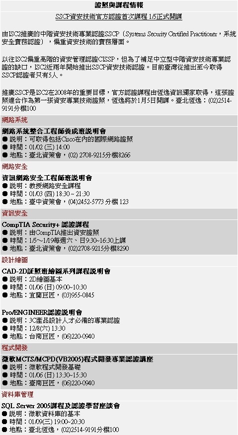 | 資料來源:ISACA臺灣分會、恆逸資訊,iThome整理,2007年12月 | ||