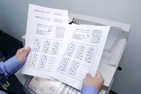 閱卷解決方案是利用光學畫記符號讀取技術(Optical Mark Reading,OMR),將作答卷與正確答案卷經由掃描後進行比對,再根據事先設定的公式計分,就可以直接輸出成績報表。