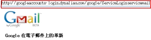 多數人都知道Gmail提供大容量免費信箱服務,但這個大容量究竟是多少,不見得有許多人清楚。日前就有駭客假冒Gmail小組發信給特定對象,表示可將郵件儲存容量從4GB提升到6GB外,並提供一個看似是Gmail官方連結的連結(mail.google.com/mail/updateservices),但若從釣魚郵件點選此一網址後,則會被導引到其他的惡意網址(googleaccounts-login.dynalias.com /google/ServiceLoginservicemail&passivetrue/Fmail.google.com3Dl