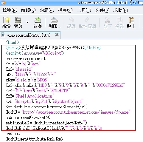 若檢視該網頁的原始碼,這些程式碼都經過編碼,看起來就是一堆亂碼,看不出特殊之處。