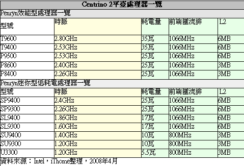 英特爾已在2月推出Santa Rosa Refresh平臺,新一代Centrino 2平臺仍是延用Santa Rosa Refresh平臺的45奈米Penryn處理器,前端匯流排最高提升至1066MHz,亦首度針對超小型筆電或平板電腦推出縮小尺寸的處理器。