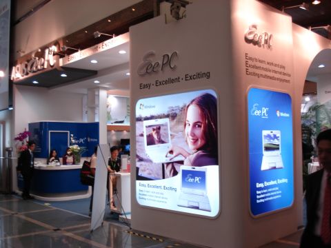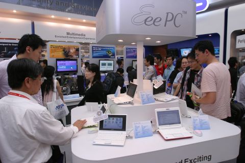 去年Eee PC一炮而紅後,今年超低價電腦市場更熱,華碩更在國際會議中心另闢專區展示一系列7吋Eee PC 700、8.9吋的Eee PC 900,以及Computex上剛發表採用Atom處理器的Eee PC 901(8.9吋)與Eee PC 1000(10吋),現場吸引許多參觀者駐足試用。