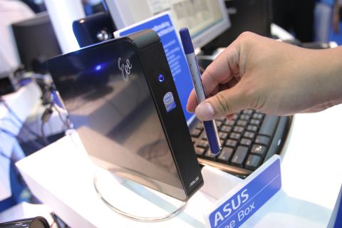華碩在Eee PC專區中也現場展示迷你桌上型電腦Eee Box,大小只有一公升左右,重量也只有一公斤,可接電腦螢幕或轉接電視使用。
