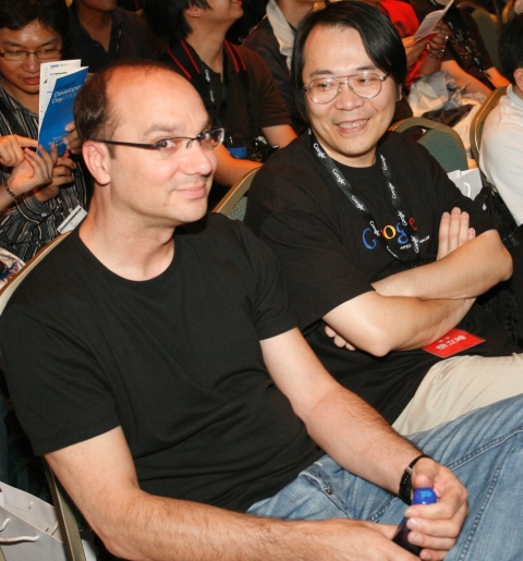 Google行動平台總監Andy Rubin也特地訪台參與台北程式開發日(圖左一),雖然並沒有參與演講活動,不過Rubin是整個Android計畫的最高主管,他的參與也代表Google對台灣開發者的重視。