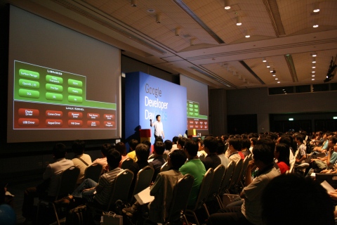 開場的主題演講由Google台灣工程研究所所長簡立峰揭示今年開發日的主題,包括新發表不久的App Engine和手機平台Android,這也是Google首次正式在台展示Android技術架構。