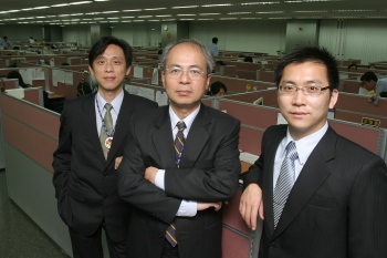 | 彰化銀行資訊處資訊技術科科長陳顯龍(圖中)說:「銀行的資料倉儲應用是被逼出來的。」為了不斷突破營運目標,銀行必須更精準地掌控各種交易行為模式,而這個關鍵就是資料倉儲的應用。圖左為彰化銀行資訊處資訊技術科李建佃,圖右為彰化銀行資訊處資訊技術科王俊育。 |