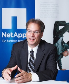 NetApp營運長Tom Georgens在接受本刊專訪時表示,隨著快閃記憶體的價格逐漸走低,未來有可能將會大幅改變現有企業儲存系統的樣貌。短期來說,Tom Georgens認為企業等級的儲存廠商將會利用快閃記憶體強化現有磁碟陣列控制器中快取的能力,提升磁碟陣列的資料吞吐量,讓儲存系統更有效率。長期來看,如果快閃記憶體的價格能夠降到與相同容量的高階光纖通道硬碟差不多,Tom Georgens認為,未來企業講求存取速度的線上儲存,儲存系統將很有可能捨棄現在磁碟陣列的設計,改用快閃記憶體直接做為儲存空間。