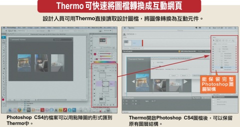 Adobe來臺展示新一代豐富網路互動應用(RIA)設計工具Thermo(開發代號),可以整合開發人員與設計人員的工作流程,讓彼此很容易共享RIA專案內容,不會因為其中一方的異動,而讓另一方需要重新開發或設計,能夠加快開發速度與作業流程的彈性。