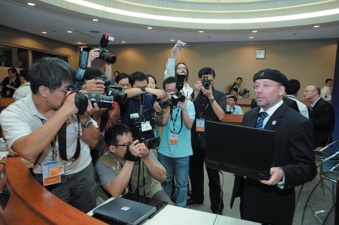 | 英特爾副總裁暨行動平臺事業群總經理Mooly Eden宣布,預計明年下半年推出首款Nehalem架構的Calpella平臺。照片提供/Intel |
