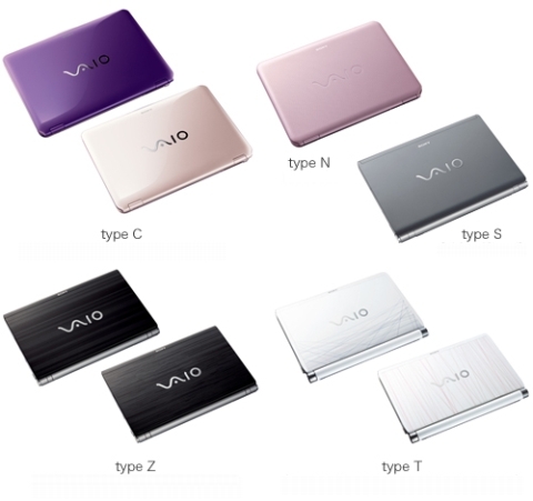 VAIO type Z、T系列筆電在規格上除了處理器升級到Core 2 Duo P9600 2.66GHz、SU9300 1.20GHz之外,前者繪圖卡也改成內建128MB記憶體的GeForce 9300M GS。其中T系列是搭載BD光碟機且重量約1.3kg的輕型筆電,其餘包含藍芽、IEEE 802.11a/b/g/n WLAN、指紋感應器等介面均大同小異。VAIO type S則是唯一不具64bit OS與4GB記憶體的中階筆電款式,處理器為Core 2 Duo P8600 2.40GHz。