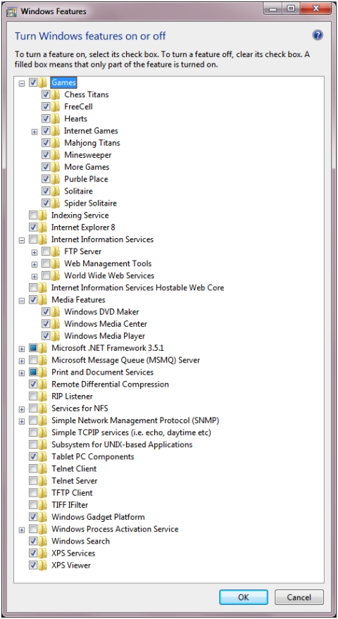 Mayo表示,Windows Vista的控制台原本就能讓使用者關閉不想要的功能,但Windows 7列出更多的選項,讓使用者更能控制作業系統中的功能。在XP及Vista中該功能稱為「新增或移除程式」,在Windows 7中微軟則命名為「啟用或關閉視窗功能」。