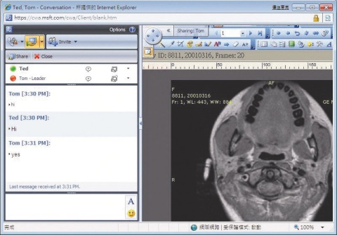 除此之外,OCS 2007 R2也加入了Communicator Web Access的功能,可以讓非在公司內使用OCS系統的外部使用者,透過瀏覽器加入即時訊息的介面。過去R1的用戶,如果要建立即時訊息的通訊,必須雙方的終端都有安裝OCS,而現在透過Communicator Web Access,就能讓外部使用者以匿名的方式連線進入。除此之外,使用者也能透過此一功能相互分享桌面。「舉例來說,如果醫院的醫生需要透過X光片討論病情,現在OCS 2007 R2能夠直接將桌面分享給群組內的使用者,如此一來,醫院透過OCS與PACS的介接,以及桌面分享的功能,就能提供醫生一個隨時能夠透過圖像討論病情的平臺。」常志誠說。當然,桌面分享的功能,也能支援Communicator Web Access,讓非內部的使用者一起參與討論。