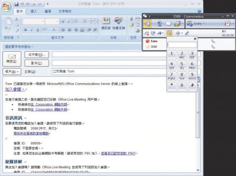 除了在語音上支援了更多功能外,OCS 2007 R2也加入了更多更便利的協同作業能力。臺灣微軟專案技術經理常志誠表示,OCS 2007 R2現在能夠支援Dial-in的語音會議功能,使用者可以直接透過電話或電腦的VoIP程式,撥入正在進行的語音會議,過去R1無法提供這樣的能力。