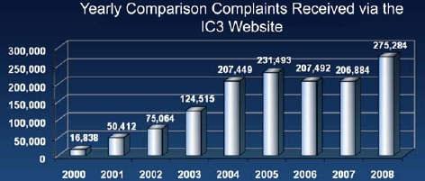 2008年IC3的網路詐騙申訴案例創2005年後的新高。