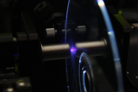 GE研究人員展示在標準DVD光碟片大小的微型全像儲存材料上儲存500GB容量的技術性突破。
