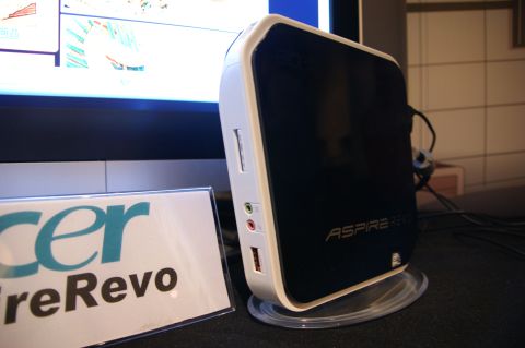 AspireRevo本體採菱形設計,大小只有1公升體積相當於一本書大小,右上角為電源鈕,左右兩側為週邊連接埠,提供6個USB埠、1個e-SATA介面、VGA埠、讀卡機及HDMI介面。