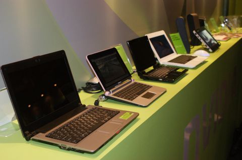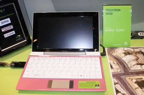NVIDIA並且在攤位上展出採用Tegra 處理器的小筆電,從8.9吋至10吋機種皆有,另外也有MID、智慧型手機等等。