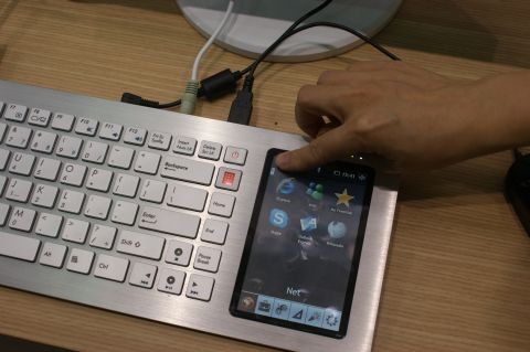 接上螢幕後則可使用Windows作業系統,但鍵盤上仍可利用Linux系統執行簡單的工作。