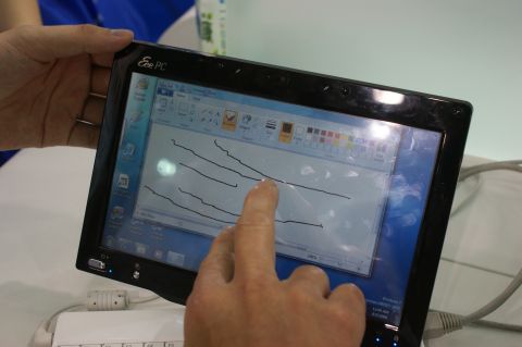 至於延後推出的8.9吋平板觸控電腦Eee PC T91,華碩也趁著即將上市的Windows 7,在現場展示其多點觸控功能。