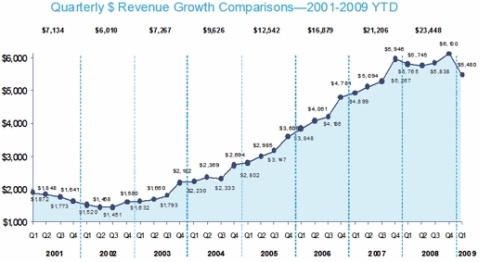 受到不景氣影響,根據美國互動廣告局(IAB)所公布的最新數據顯示,2009年第一季網路廣告營收為55億美金,較去年同期縮減了5%。