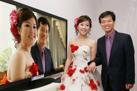 3D電視可用於婚紗店,向新人展示3D婚紗攝影。