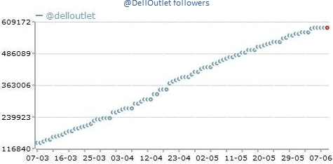 戴爾在Twitter上的帳號@DellOutlet三個月內追隨著從1萬多成長到超過6萬