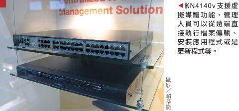 KN4140v還支援虛擬媒體(Virtual Media),管理人員可以從遠端透過光碟機或其它儲存媒體,直接執行檔案傳輸、安裝應用程式或是更新程式等。此外,還能透過PON(Power Over the Net)連結埠,直接與PN0108連結,做到遠端開關伺服器。