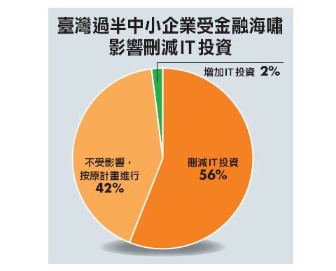 金融海嘯對臺灣中小企業IT投資造成重大影響,有56%的中小企業在這一波金融海嘯中刪減IT投資。