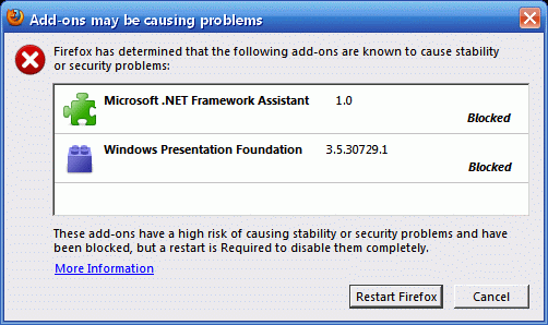 Mozilla所攔阻的兩個來自微軟的Firefox外掛程式