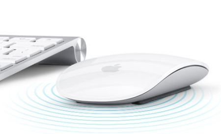 魔術滑鼠內含兩顆AA電池,透過藍牙與Mac電腦連結,感應距離最遠可達10公尺,並具有電源管理系統可在休止時切換到省電模式。