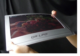 另一款厚度5.8mm、10.7吋螢幕的超薄全可撓式電子紙裝置則是目前全球第一款採用全可撓式設計的產品,顯示材料採用BRIDGESTONE獨自研發的電子粉流體(Electronic Liquid Powder,ELP),具有可快速對應文字、圖片顯示,以及斷電可在特定時間內持續維持顯示狀態等特性。