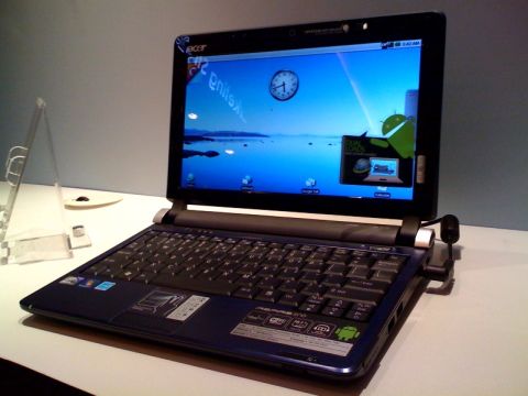 宏碁在法說會上展示宏碁品牌首款Android手機Liquid,以及內建Android、Windows 7雙作業系統的小筆電Aspire one D250。
