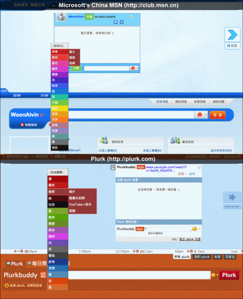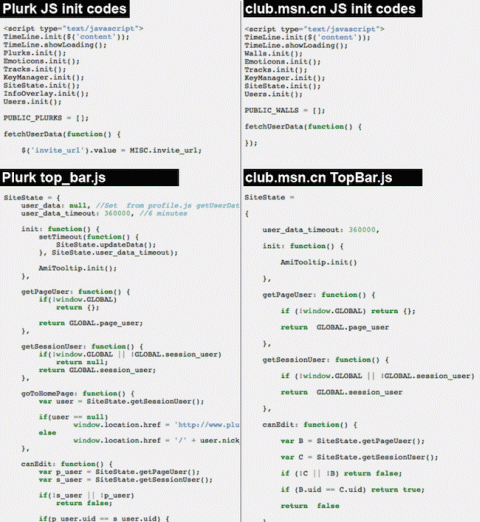 Plurk指出中國微軟MSN聚酷不只在介面上,程式碼也抄襲: