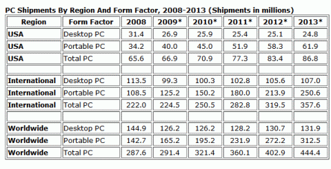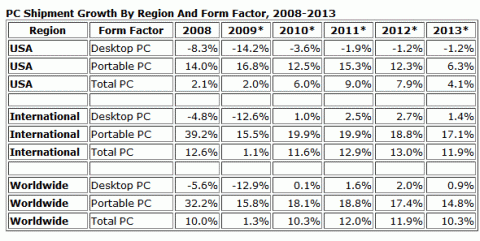 展望未來,2010年預計將加快成長腳步。目前總計已經佔去總體市場一半的新興市場,在2010年將領軍達到二位數的成長數字,並持續到2013年;成熟市場也可望在2010年開始穩定成長。桌上型電腦出貨量在2010年大約將表現持平,筆記型電腦可望成長18.1%,繼續帶動總體PC出貨。商用市場預計在2010年第二季復甦。但小筆電的成長速度將隨著超輕薄機型(CULV)的上市而開始趨緩。