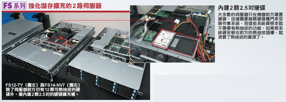 ● FS12-TY可容納14顆硬碟,強化伺服器的儲存容量